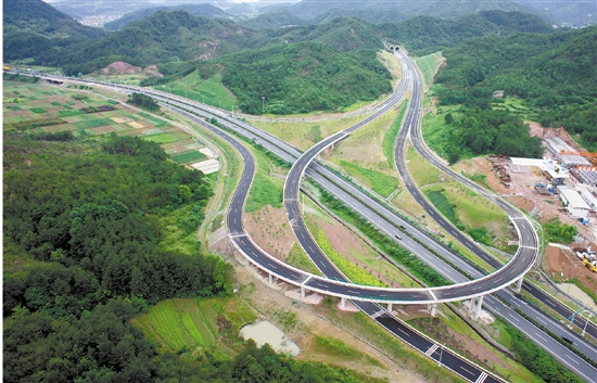 东永高速今日全线正式通车。图航拍于4日,位于东永高速与诸永高速交汇的马宅枢纽。