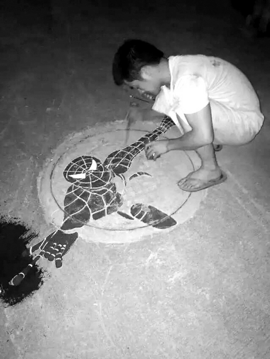 “蜘蛛侠”跃然井盖后,很快便引来村里孩子的争相观看。“叔叔,能不能再画一个奥特曼?”“我还想要一个海绵宝宝。”在孩子们的请求、家人的鼓励下,张天天利用休息时间,又接连给5个窨井盖换上了新衣。