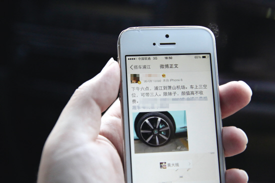 微博发信息求搭车,结果搭车后变成了被勾搭。浦江的陈女士最近也拨打了本报新闻热线82374110向记者诉苦:她在微博上找人搭车从金华去萧山机场,结果搭车结束后,自己的手机号码被男司机要走了,现在对方三天两头骚扰她。