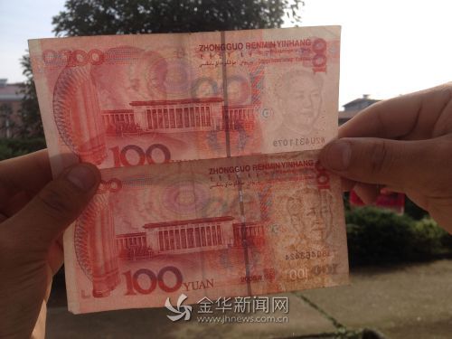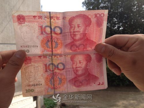 收到这张钱的是河南小伙周乾隆,他在金华待了三四年,在七里畈做水果生意。大概一个多月前,一名60多岁的阿姨在买菜买水果时,她的一张百元钞票没有人肯收,周乾隆一开始还以为可能是假币。