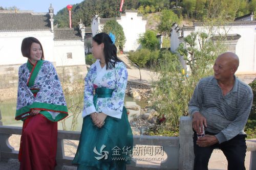 据了解,这些身着汉服的游客是武义壶山小学的师生,刚表演完节目抽空来游玩。他们说,没想到来看风景,自己也成了一道风景。