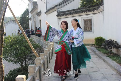 近日,武义第九届温泉节暨第六届国际养生博览会在璟园古民居博物馆开幕,一群游客穿着汉服大大方方地逛起了博物馆。游客们纷纷用相机、手机对着她们取景,这些从汉朝“穿越”的游客配合到位,摆出各种姿势任人拍摄。