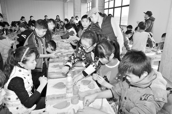 昨天上午,在金东区江东镇的古婺窑火陶瓷文化有限公司,100余名来自市某聋哑学校的聋哑学生在金华公交集团金东客运公司一车队工作人员带领下,体验传统陶艺。一车队负责人介绍,他们将定期组织孩子们出去游玩,帮助他们融入社会,让他们快乐成长。